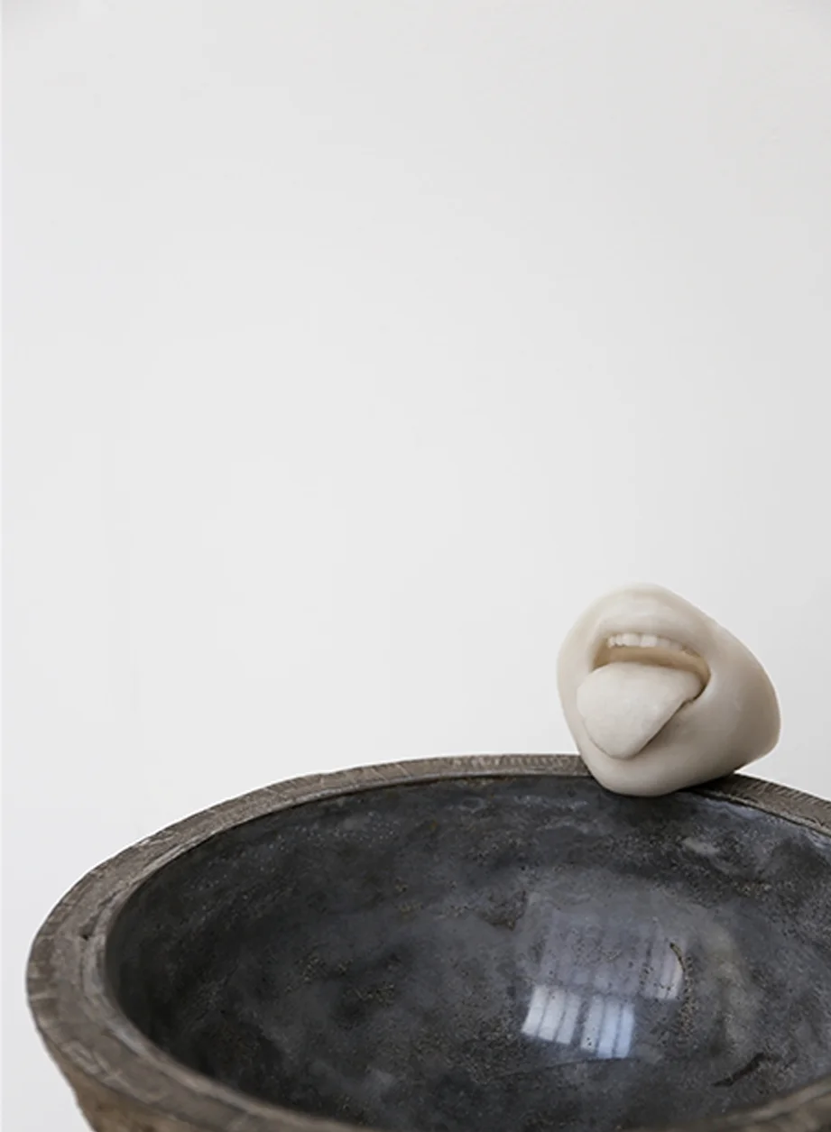 patinated copper, himalayan rock salt, lava salt, soy sauce, wax, stone, 2017 (Photo by Damian Griffiths)